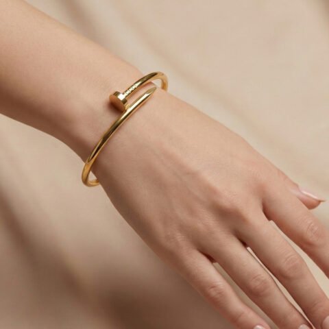 Anti‑Tarnish Gold Plated Nail Cuff Bracelet | Modern Minimal Luxury Bracelet for Women