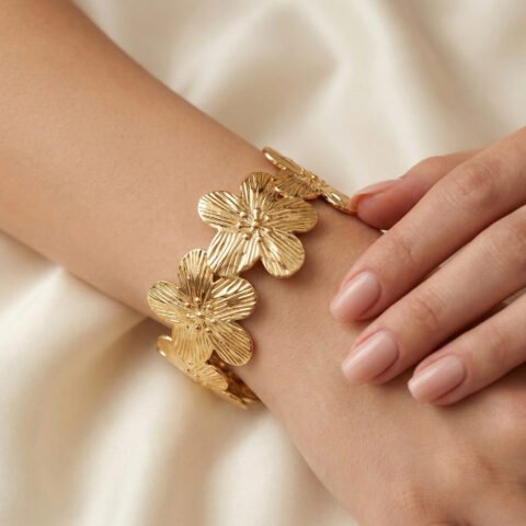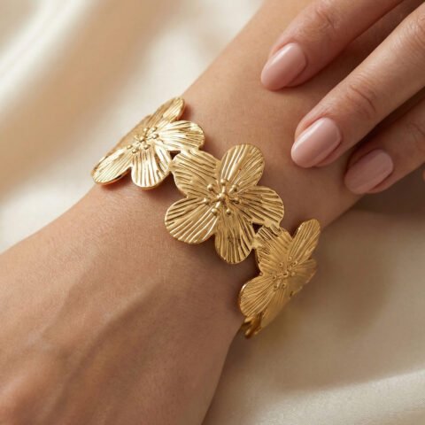 Gold Plated Anti‑Tarnish Floral Bloom Bracelet | Luxury Modern Minimal Bracelet for Women