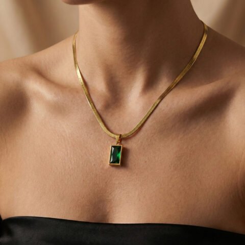 Gold Plated Anti‑Tarnish Emerald Prism Pendant | Luxury Modern Minimal Necklace for Women