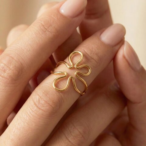 Aurla Bloom Curve Gold Plated Ring – Anti‑Tarnish Luxury Ring for Women