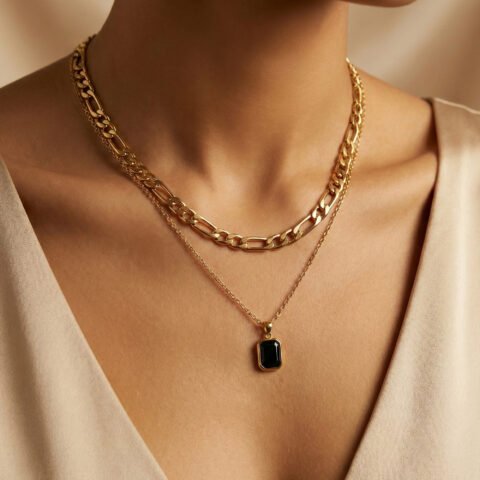Aurla Noir Edge Pendant – Gold Plated Anti‑Tarnish Luxury Pendant for Women