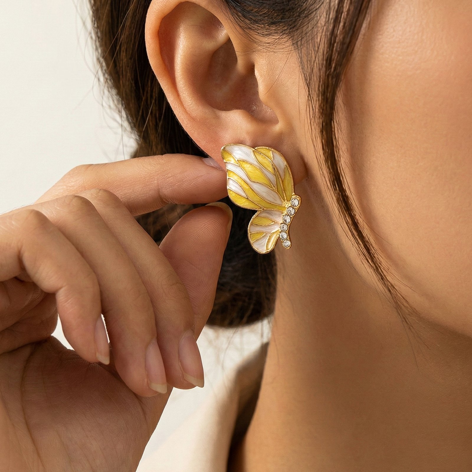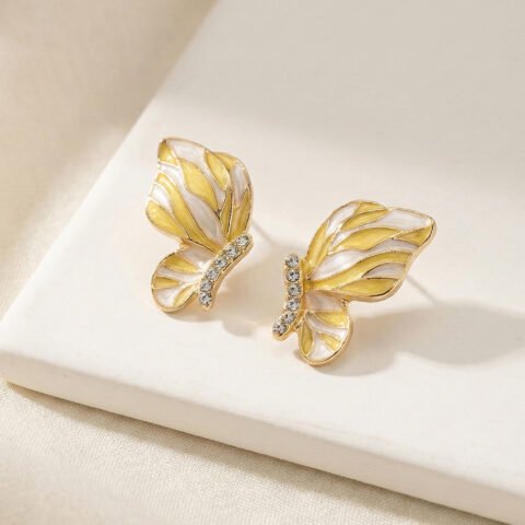 Aurla Flutter Enamel Gold‑Plated Anti‑Tarnish Butterfly Earrings for Women