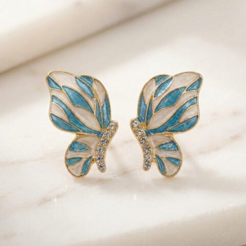 Aurla Azure Flutter Enamel Gold‑Plated Anti‑Tarnish Butterfly Earrings for Women