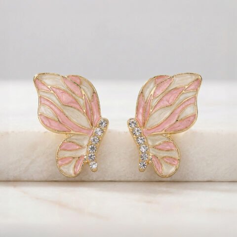 Aurla Blush Flutter Enamel Gold‑Plated Anti‑Tarnish Butterfly Earrings for Women