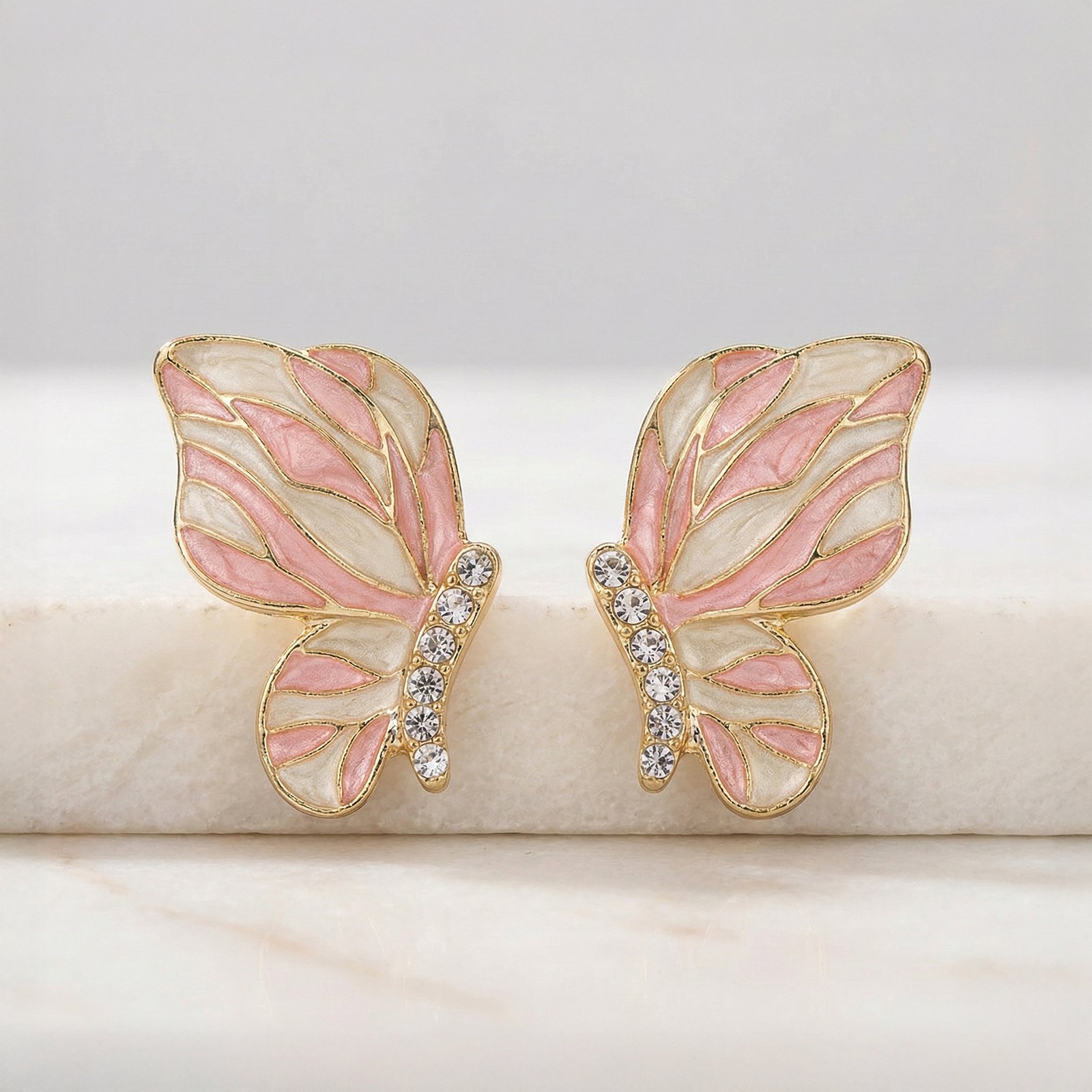 Aurla Blush Flutter Enamel Gold‑Plated Anti‑Tarnish Butterfly Earrings for Women